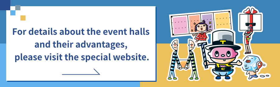 TRC operates six event halls located just in front of Ryutsu Center Station on the Tokyo Monorail. The largest has floor space of approximately 8,500 ㎡, making it one of only a few spaces in the central Tokyo area capable of hosting large-scale events. These facilities are popular for their multiple adjacent conference rooms, high accessibility, and convenient design and cost performance for event organizers.